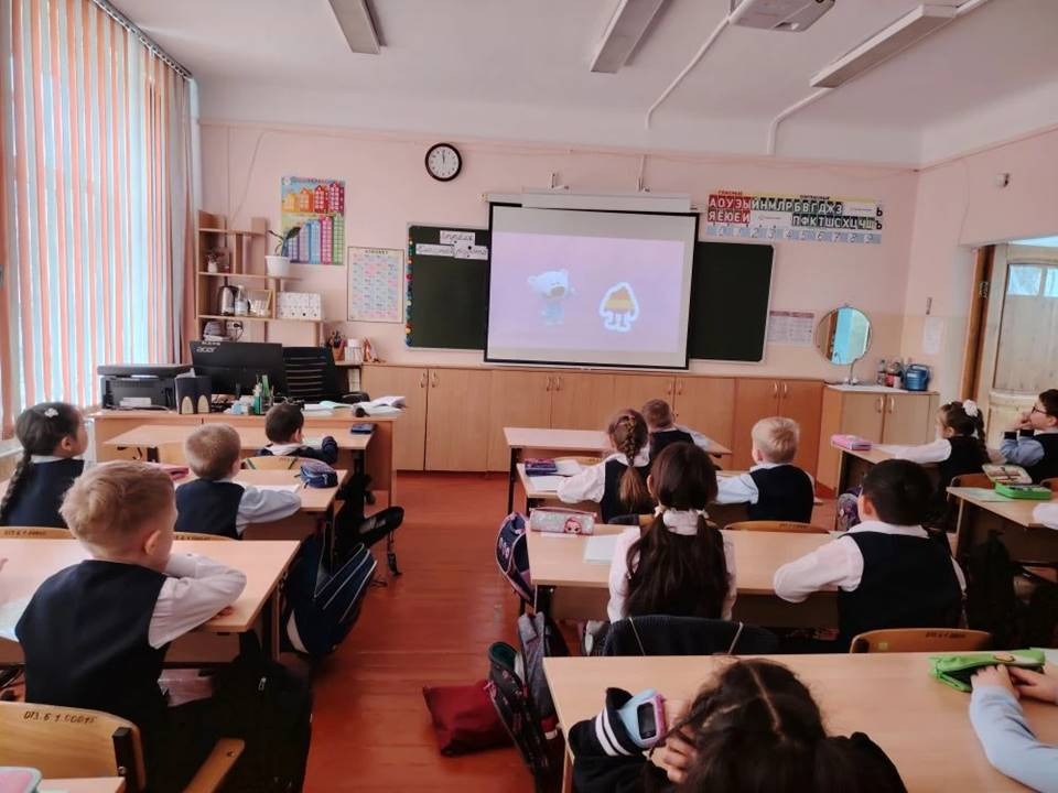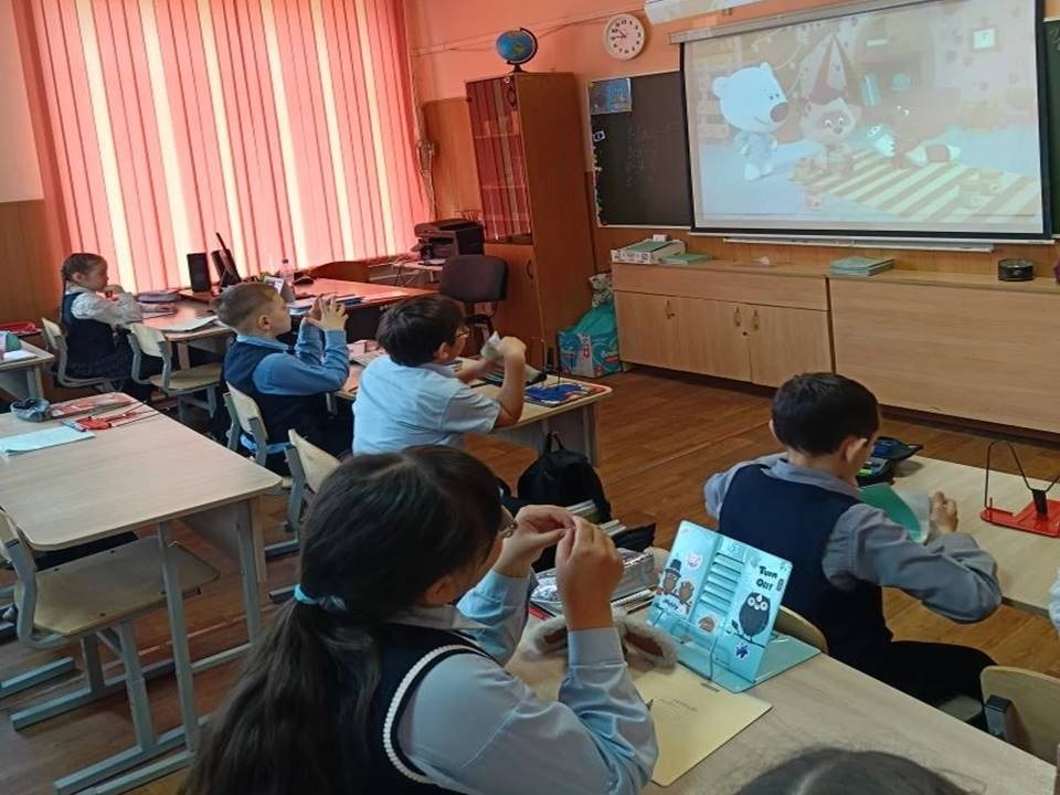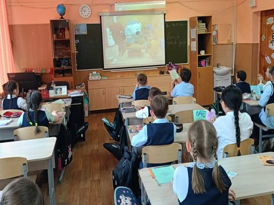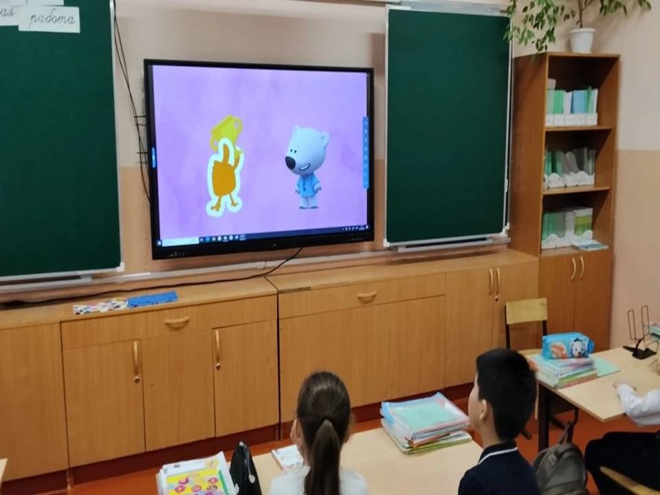 На тематическом уроке школьники посмотрели серию познавательных мультфильмов «Ми-ми-мишки — время питаться правильно». В игровой и понятной форме мишки Кеша, Тучка и их друзья рассказали детям, почему так важно полноценно завтракать, чем полезны молоко, рыба, овощи и фрукты, и почему перекусы на ходу не заменят здоровый обед .
